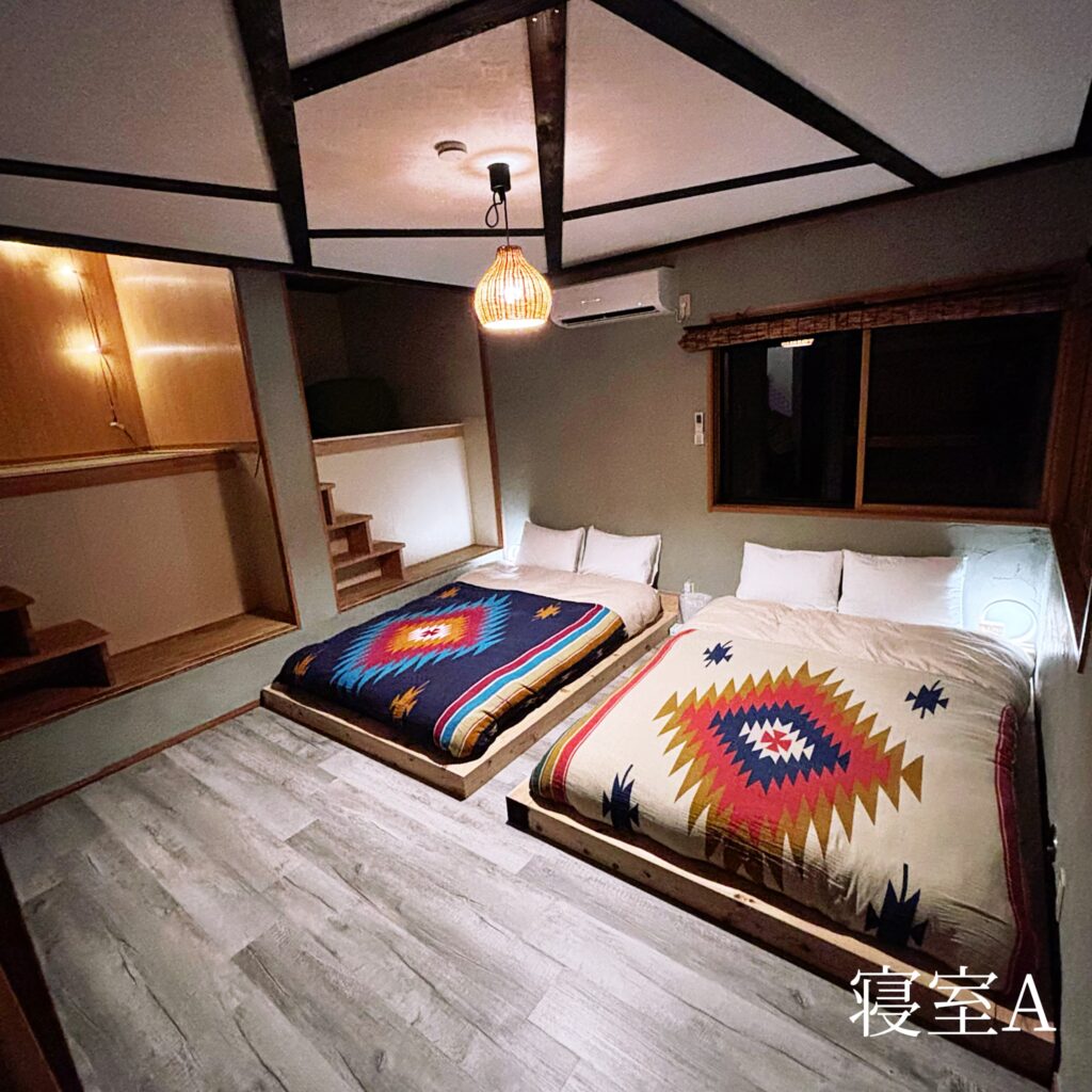 【1F】寝室1(ダブルベッド×2)/寝室2(キングベッド×1)